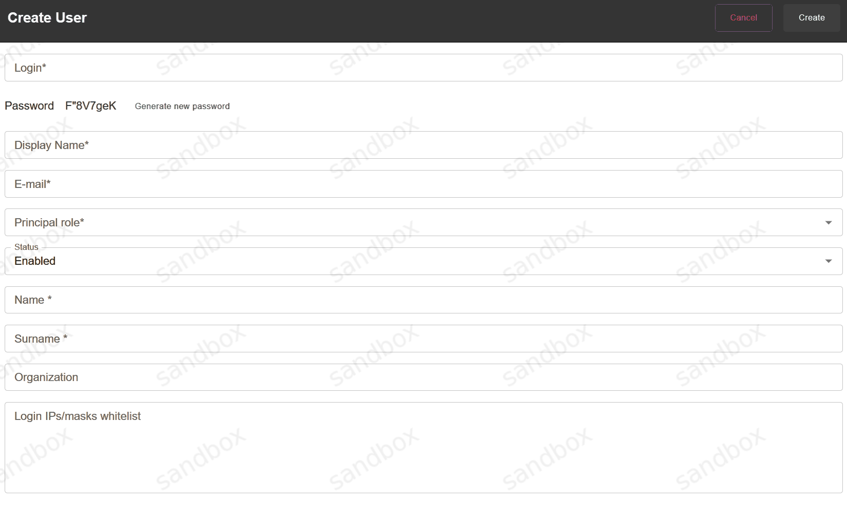 After the personal account is created, an employee can immediately log in. Login and password are generated at the stage of creating a personal account (do not forget to save the password beforehand). If the password was not saved, it can be reset on employee details screen.
