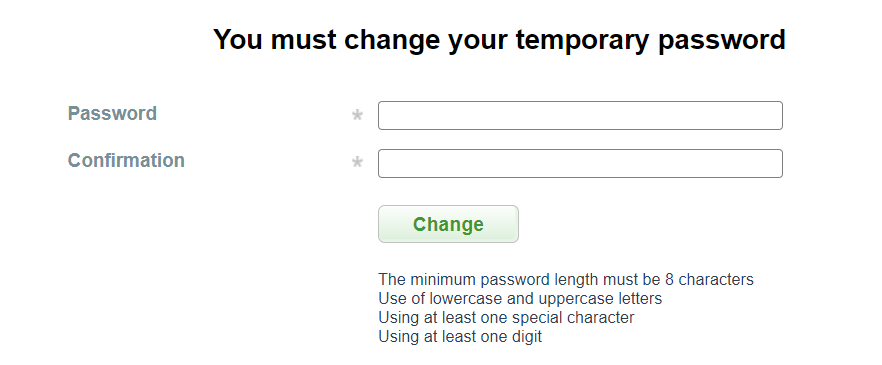 When employee logs in to the account for the first time, the system asks to change the temporary password to a permanent one: