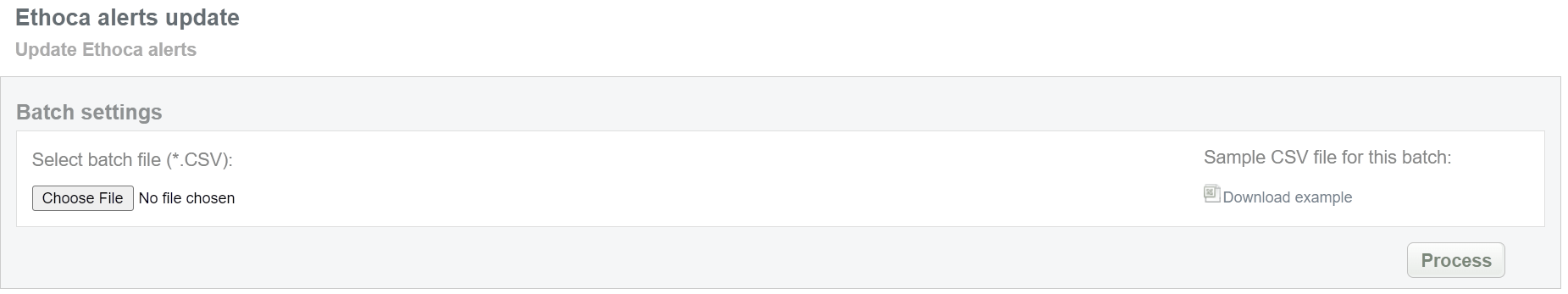 This batch operation can be useful for updating Ethoca statuses. Collect the order IDs, assigned by Dns-pay system to the CSV file and upload it to send statuses to Ethoca system. An example of CSV file for upload is available on the same screen.
